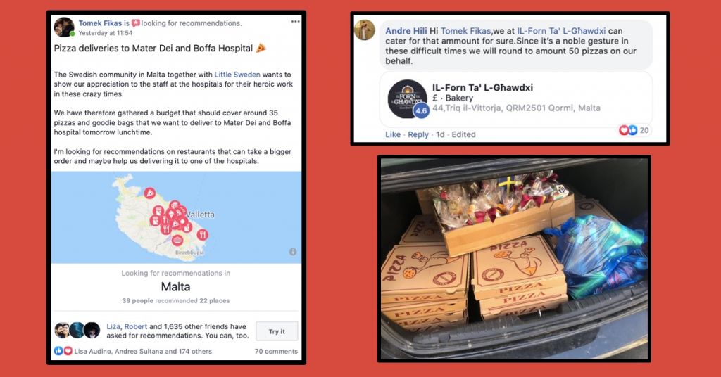LovinMalta rapporterar om den fina gesten som snabbt fick spridning på den charmiga ön Malta. En ö som också är ett hem till över 10.000 svenskar enligt uppgift. Tomek var delaktig i initiativet när han tillsammans med gruppen Maltasvenskar på Facebook anordnade en insamling för sjukhuset Mater Dei som hanterar majoriteten av Covid-19 fallen på Malta.