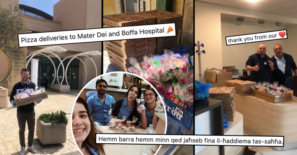 Även en lokal pizzeria visade sitt stöd genom att bjuda på 15 pizzor. Andre som driver Il Forn Ta Ghawdxi har redan tidigare levererat pizzor till personalen på Mater Dei.